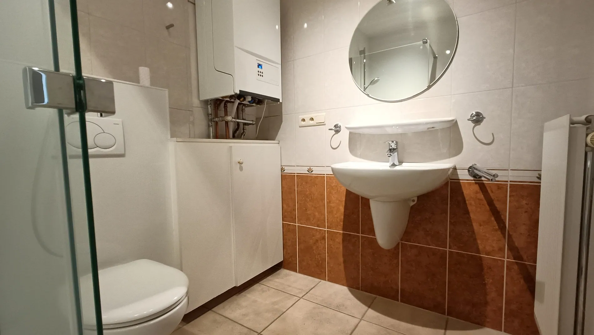 De badkamer is voorzien van alle nodige faciliteiten (inloopdouche, lavabo en 2de toilet) en er is ook een apart toilet aanwezig. De keuken is volledig uitgerust met alle toestellen zodat u lekker kunt koken.