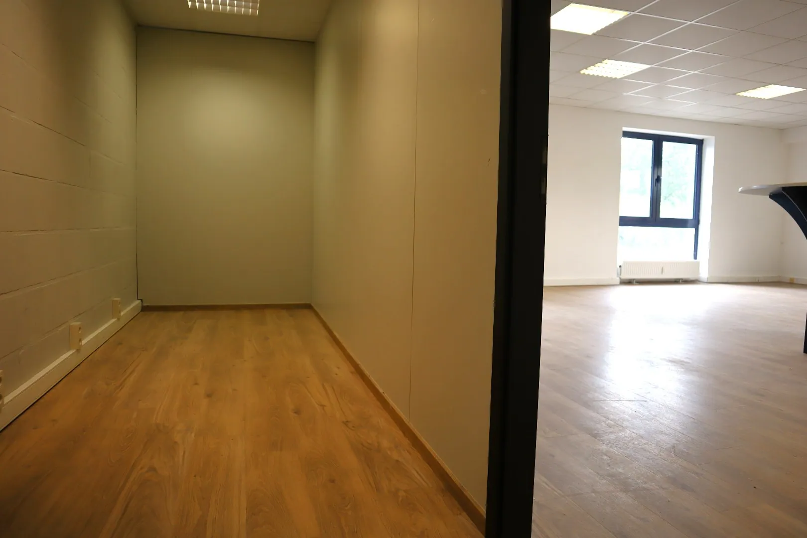 Het kantoorruimte beschikt over een bruikbaar vloeroppervlakte van 125 m² met kitchenette en bering. Het kantoorruimte zelf heeft veel lichtinval. Ter hoogte van de inkomhal zijn er gemeenschappelijke toiletten. Het kantoor wordt verwarmd met een condensatieketel op aardgas van het merk Vaillant.