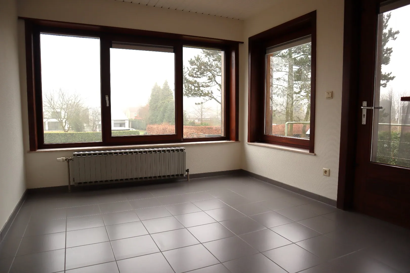 Na de inkomhal, komt u uit op de ruime leefruimte met veel lichtinval met zicht op de tuin. Aansluitend vindt u de keuken voorzien van alle moderne toestellen zoals kookplaat, spoelbak, dampkap, frigo met diepvriezer en oven. Bij de keuken is er een heel gezellige eethoekje/veranda met wederom zicht op uw prachtige tuin.