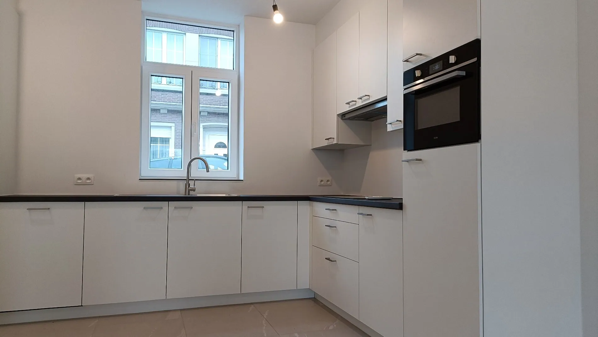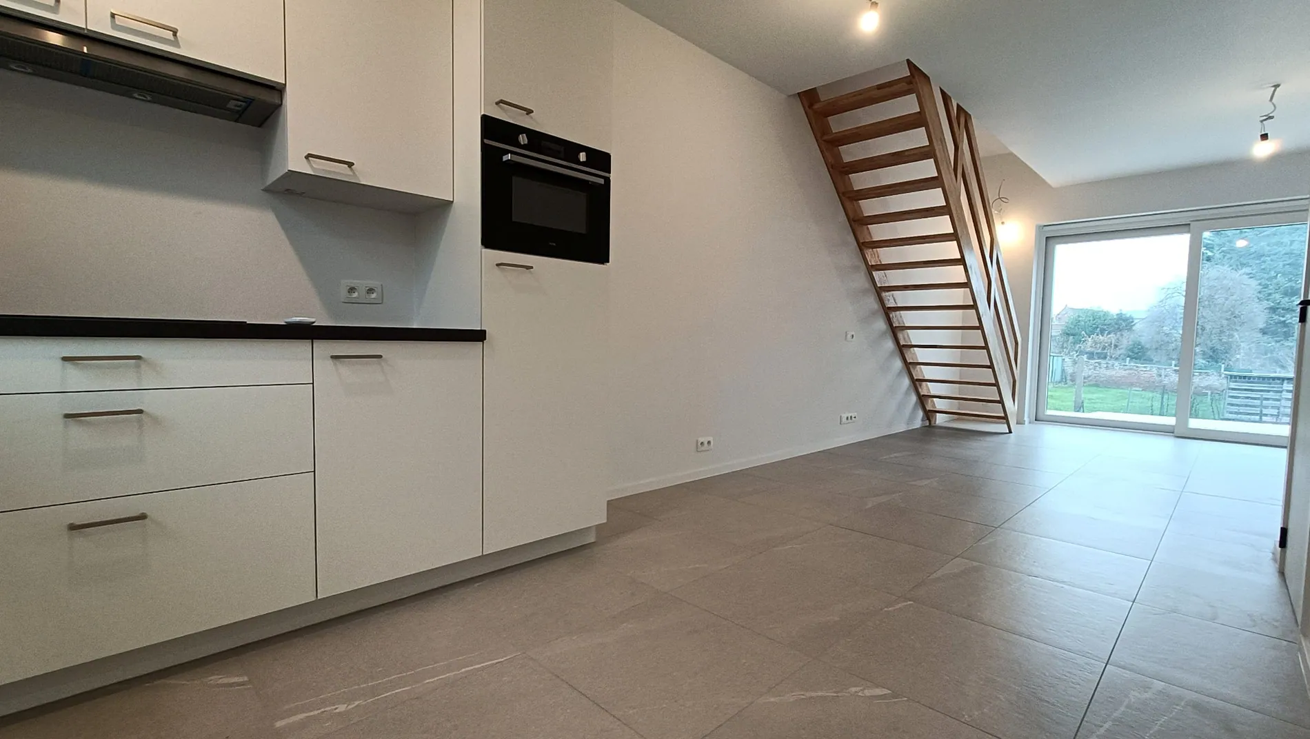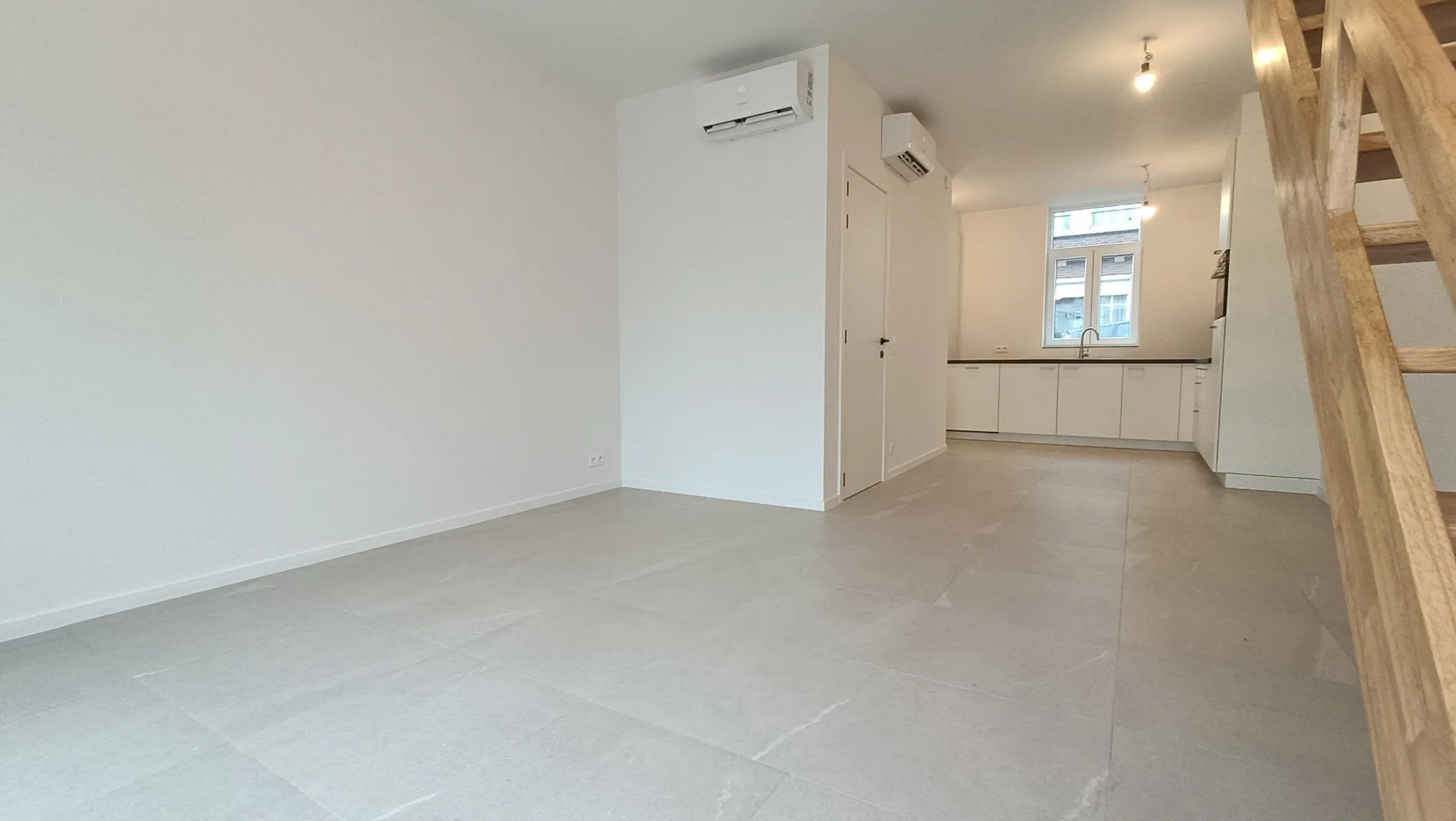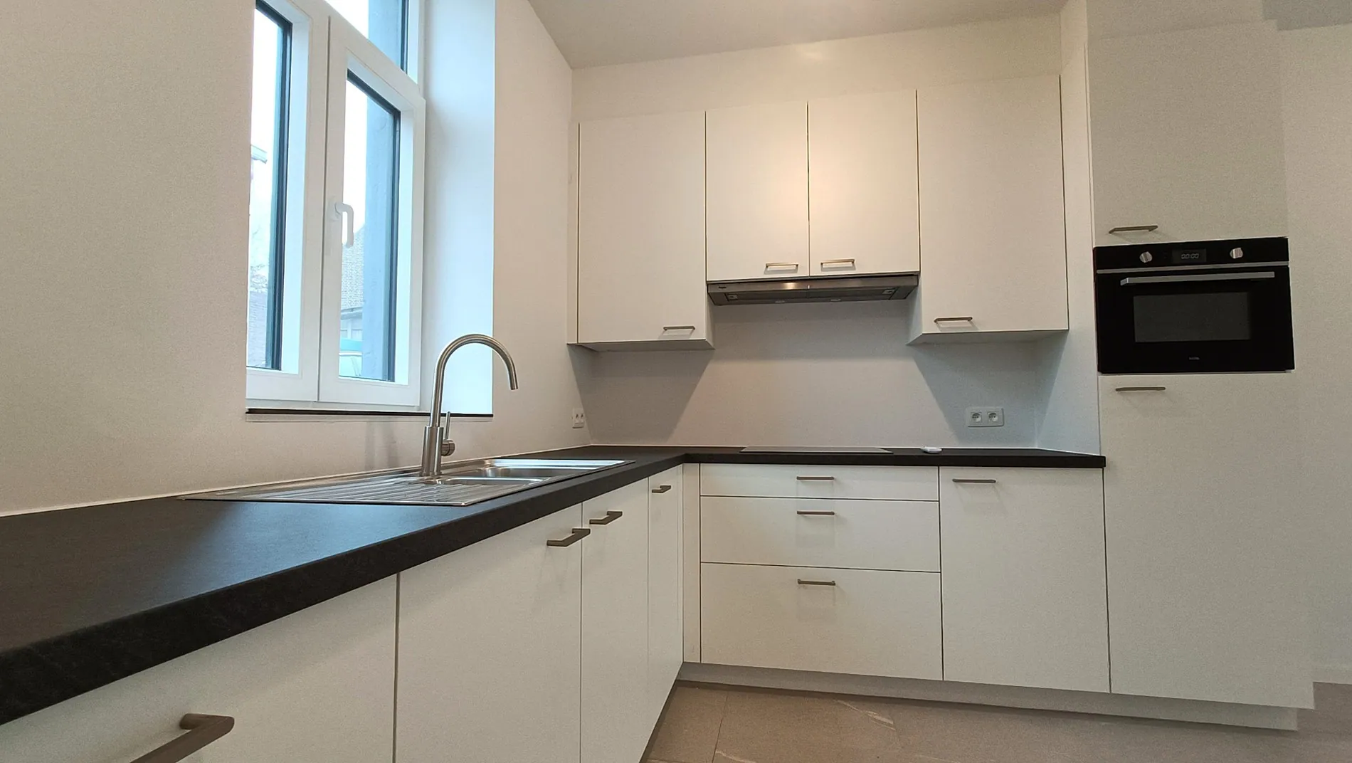 Volledig nieuw gerenoveerde woning die wacht op zijn eerste bewoner, 2 slaapkamers, nieuwe badkamer, ruime leefruimte met veel lichtinval, open keuken van Keukens Debecker voorzien van alle moderne toestellen, tuin en groot terras, volledig geïsoleerd.