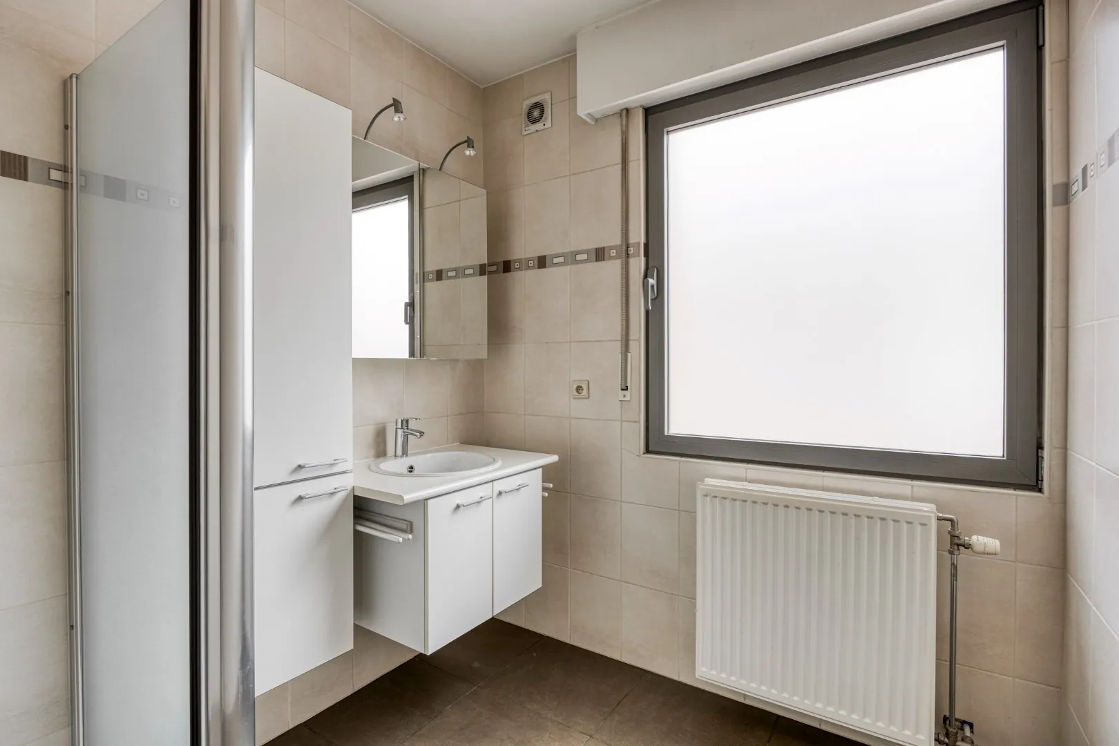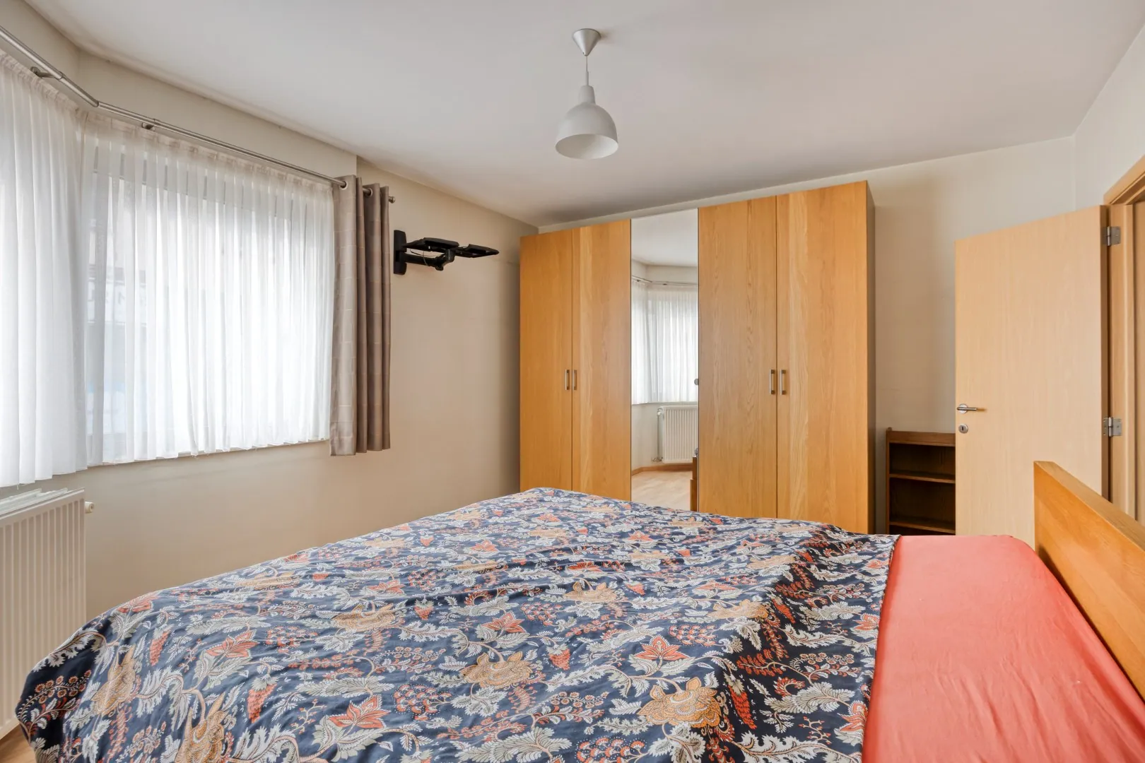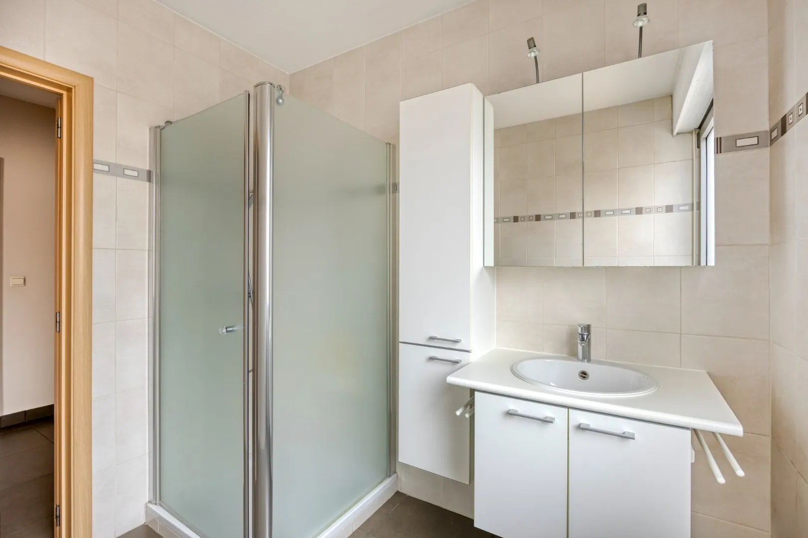 Binnenin het appartement vind je een gezellige woonkamer, een volledig uitgeruste keuken met alle moderne toestellen, een bijkeuken, 1 slaapkamer, 1 badkamer en 1 apart gastentoilet. De slaapkamer is zeer ruim en heeft een aangename sfeer, ideaal voor een goede nachtrust. De badkamer is voorzien van alle nodige faciliteiten en heeft een moderne uitstraling. Bij het appartement hoort er ook een privatieve kelderberging van 7m².