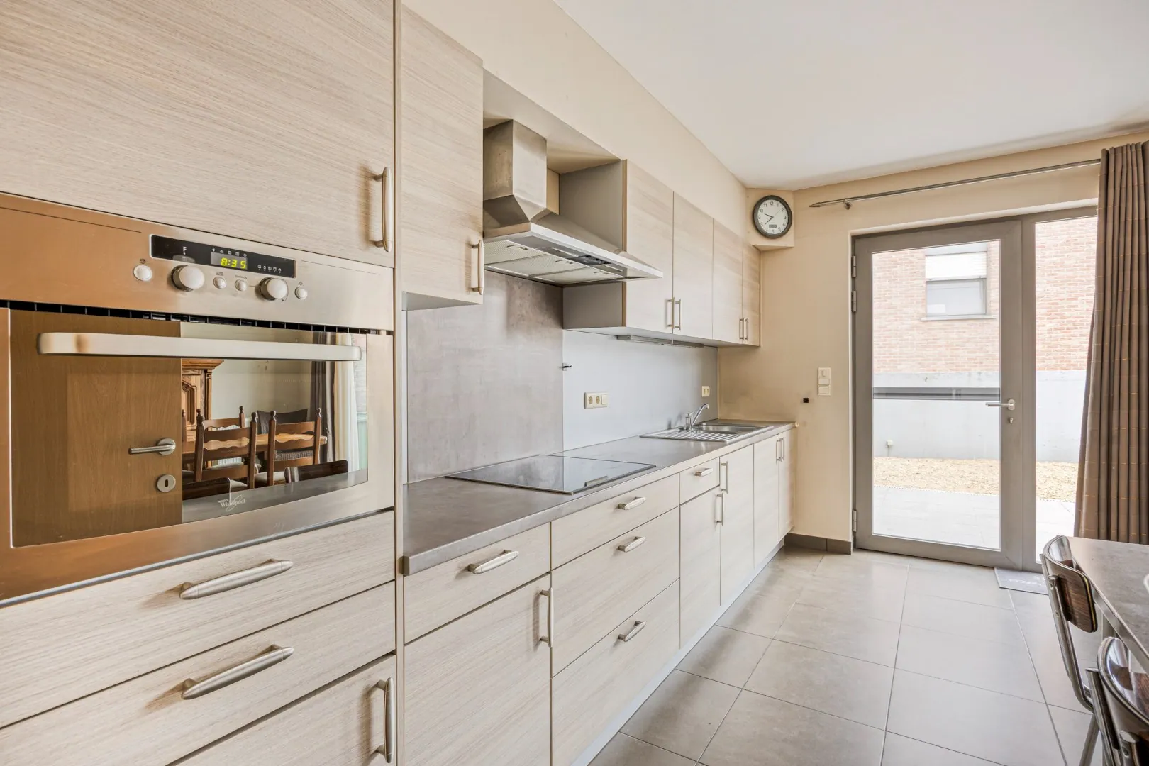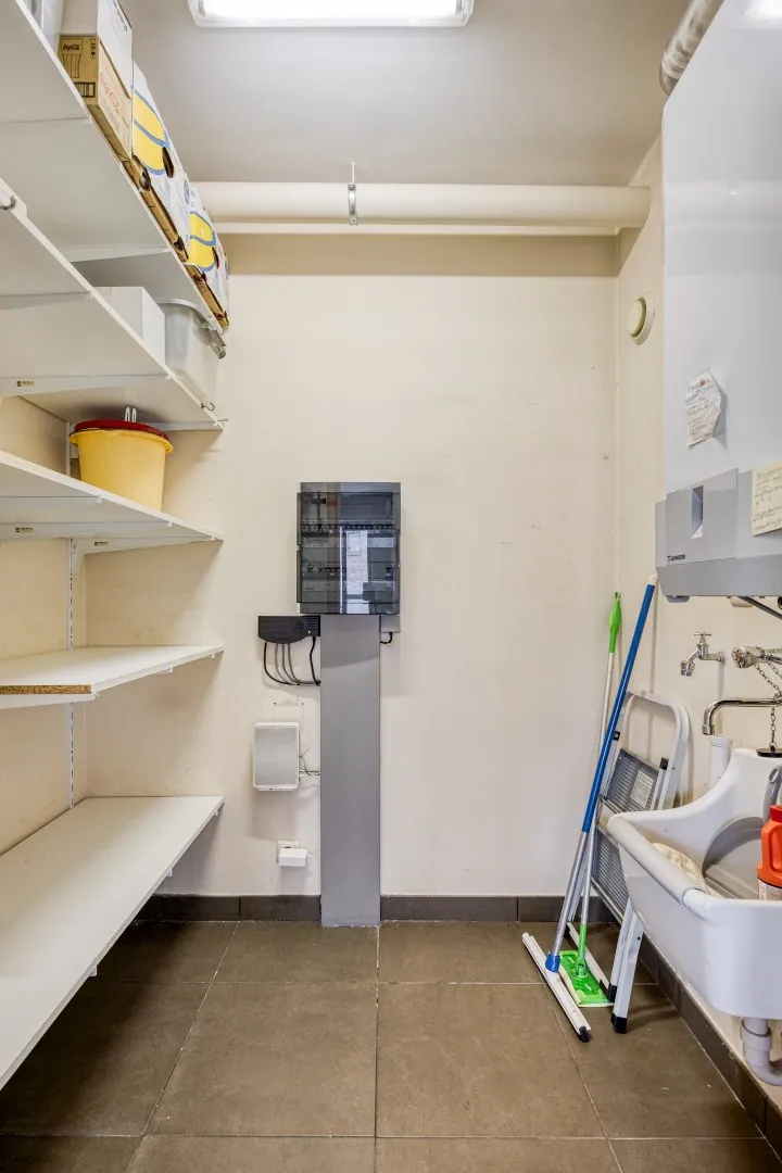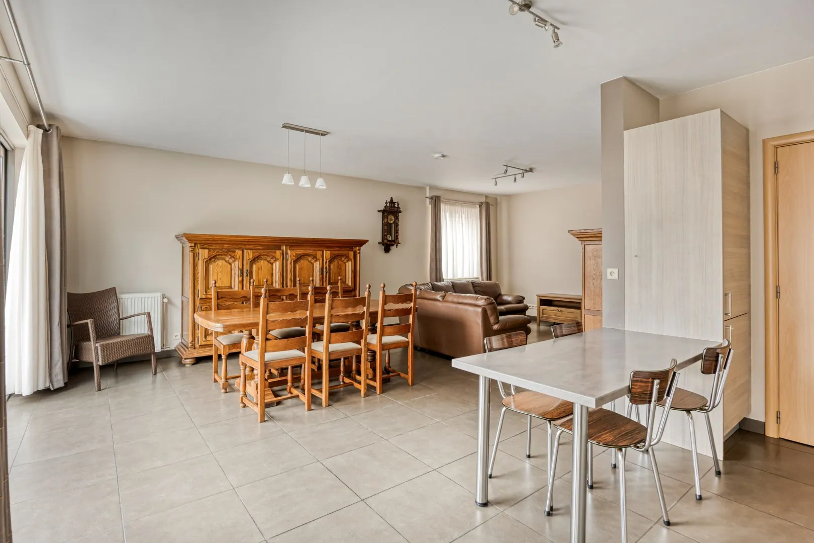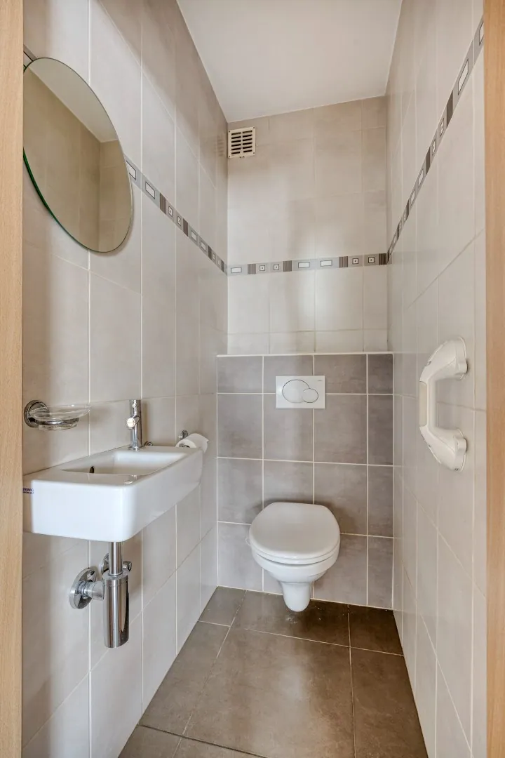 Binnenin het appartement vind je een gezellige woonkamer, een volledig uitgeruste keuken met alle moderne toestellen, een bijkeuken, 1 slaapkamer, 1 badkamer en 1 apart gastentoilet. De slaapkamer is zeer ruim en heeft een aangename sfeer, ideaal voor een goede nachtrust. De badkamer is voorzien van alle nodige faciliteiten en heeft een moderne uitstraling. Bij het appartement hoort er ook een privatieve kelderberging van 7m².