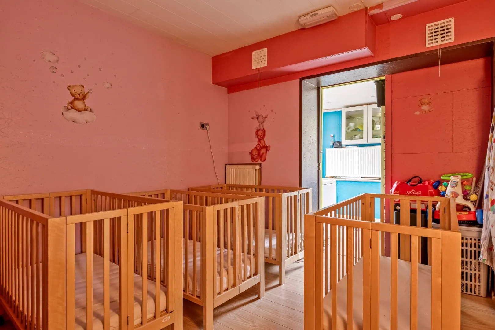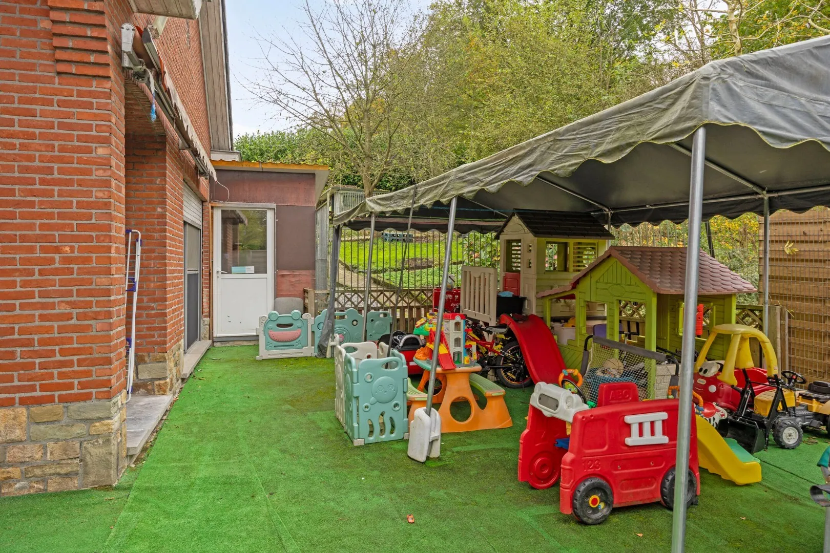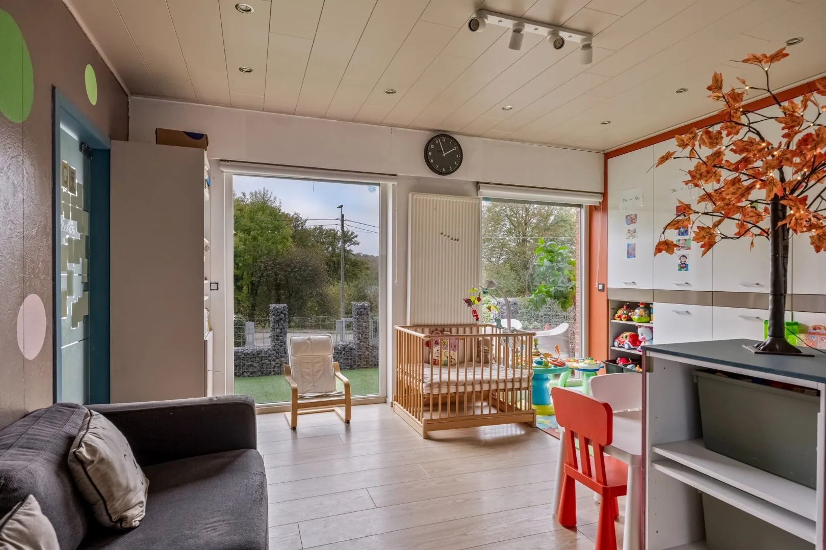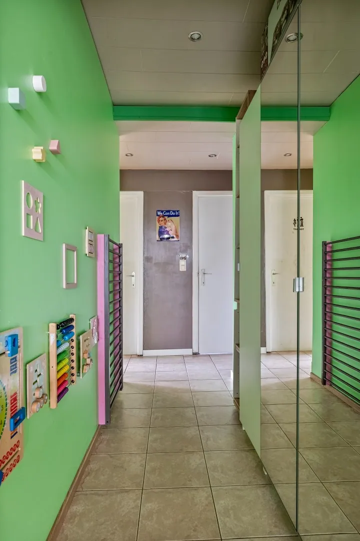 Deze villa met een bewoonbare oppervlakte van 290 m² en een oppervlakte van 22are en 35ca biedt tal van mogelijkheden. Op het gelijkvloers bevindt zich de inkomhal, ruime leefruimte met open keuken voorzien van alle toestellen, 3 ruime slaapkamers met gastentoilet en een 1ste badkamer met bad en lavabo. Vooraan de woning beschikt u nog over een lichtrijke leefruimte (die momenteel dienst doet als kinderopvang) met een prachtig vergezicht.