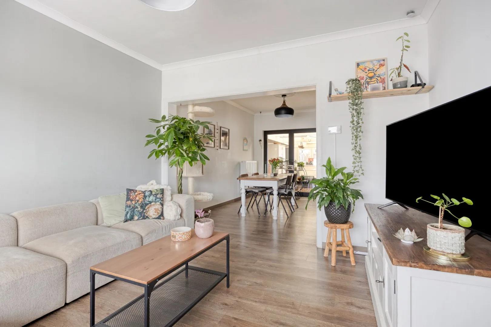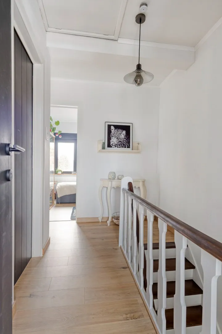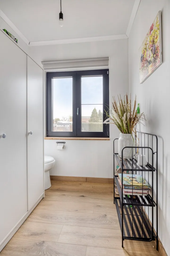 De woning beschikt over drie volwaardige slaapkamers, een moderne badkamer en een stijlvolle, praktische keuken die naadloos aansluit op de lichtrijke leefruimte. Een zuid-west georiënteerde tuin biedt een extra troef waar u in alle rust kan genieten van zonrijke namiddagen en lange zomeravonden.