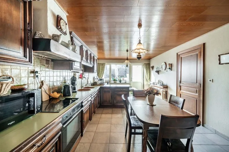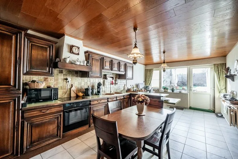 De woning beschikt over 3 slaapkamers en heeft een bewoonbare oppervlakte van 200 m² wat zorgt voor voldoende leefruimte voor het hele gezin. Na de inkomhal, komt u uit op de grote leefruimte met eetkamer met een gezellige open haard. Aansluitend ziet u de mooie keuken voorzien van alle toestellen. De badkamer is voorzien van een inloopdouche en aparte lavabo.