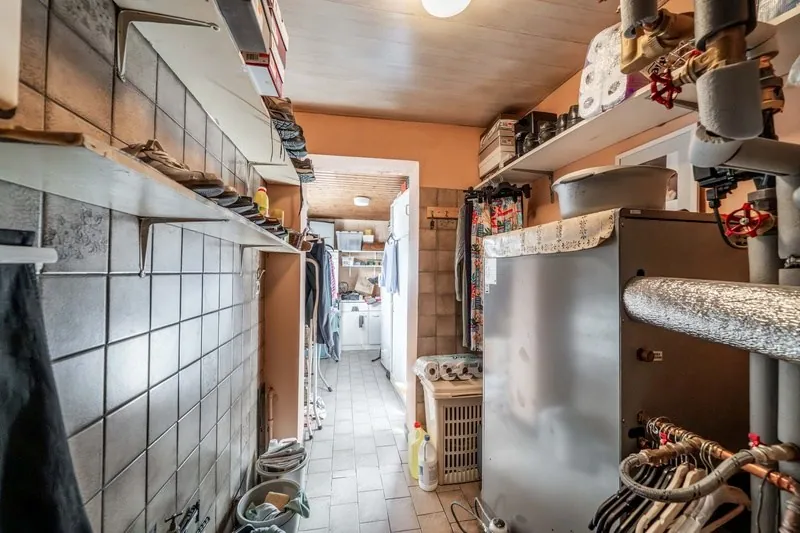 Naar de zolder toe is er een vaste trap zodat u hier gemakkelijk nog bijkomende kamers kunt maken of man cave of hobbyruimte. Met een ruime tuin en terras op het zuiden, kun je optimaal genieten van de zonnige dagen of BBQ.