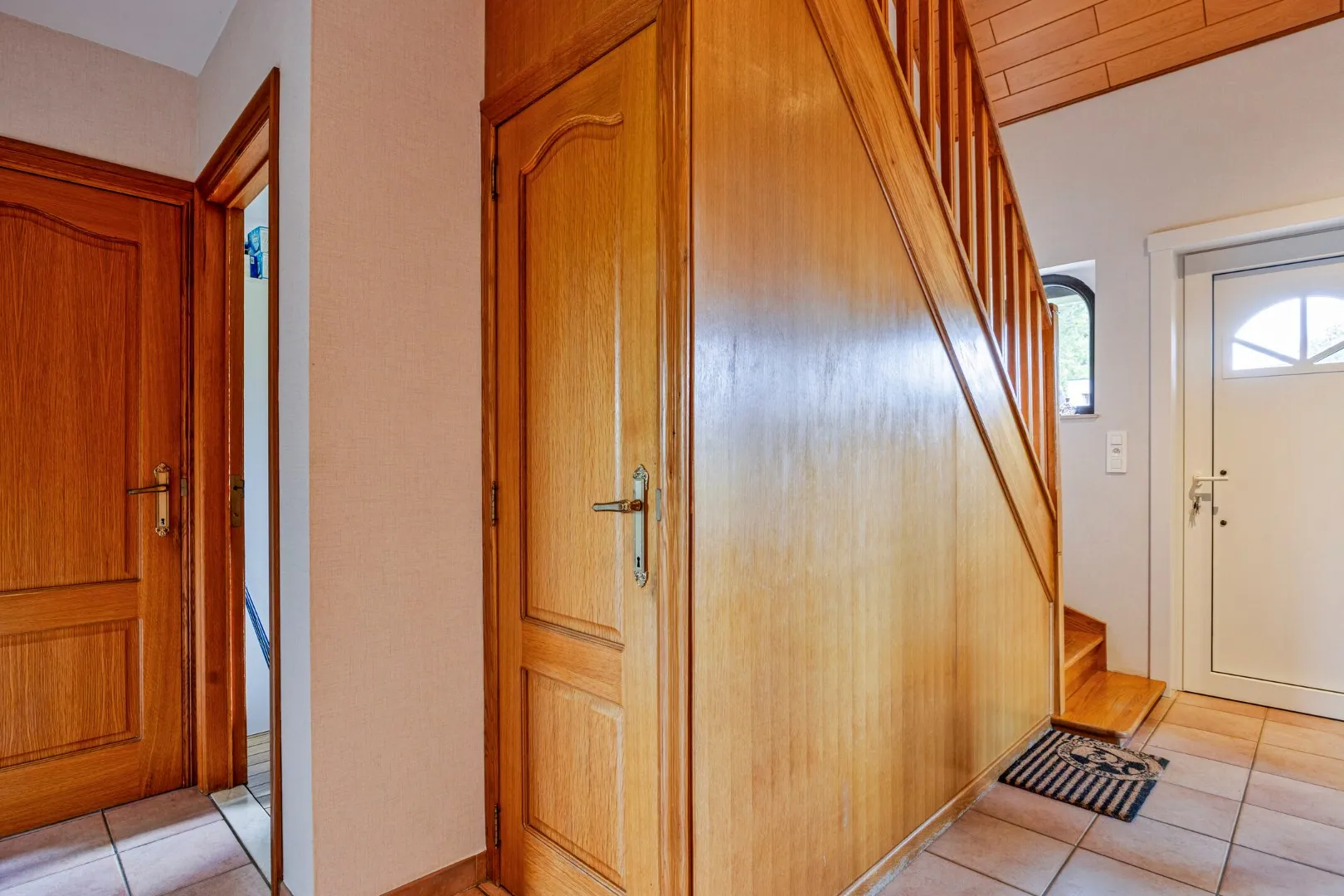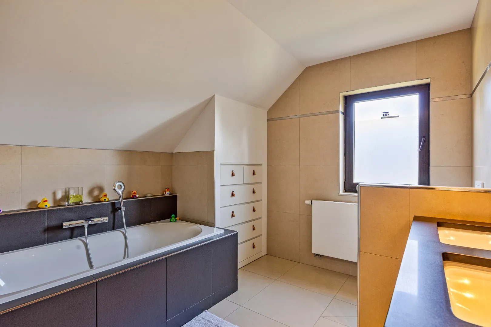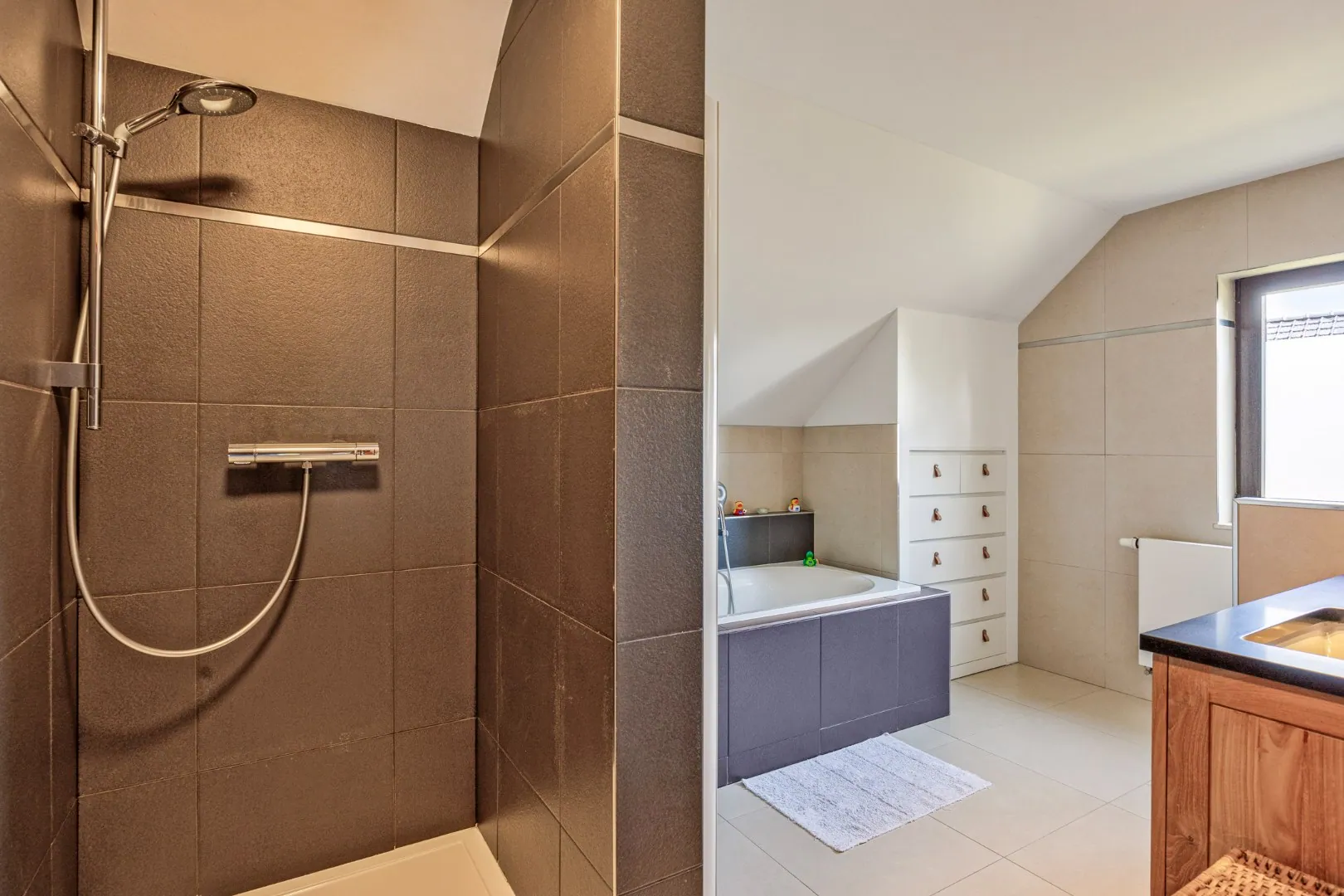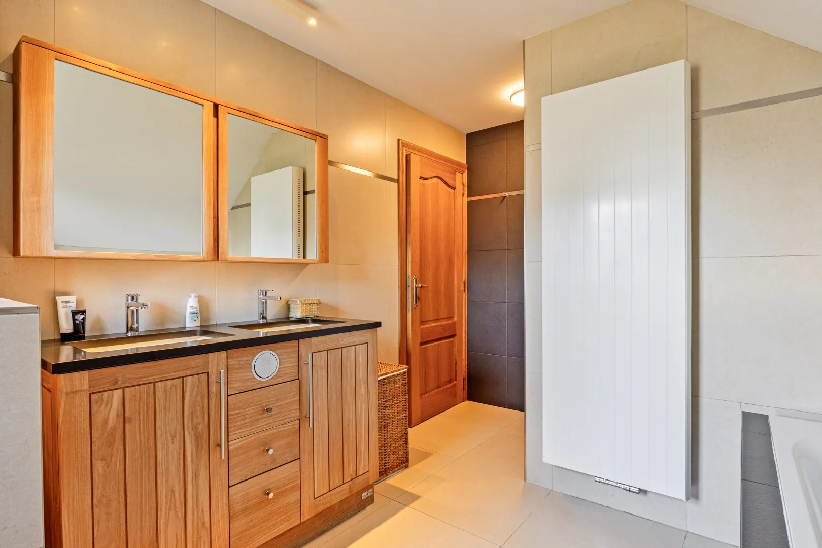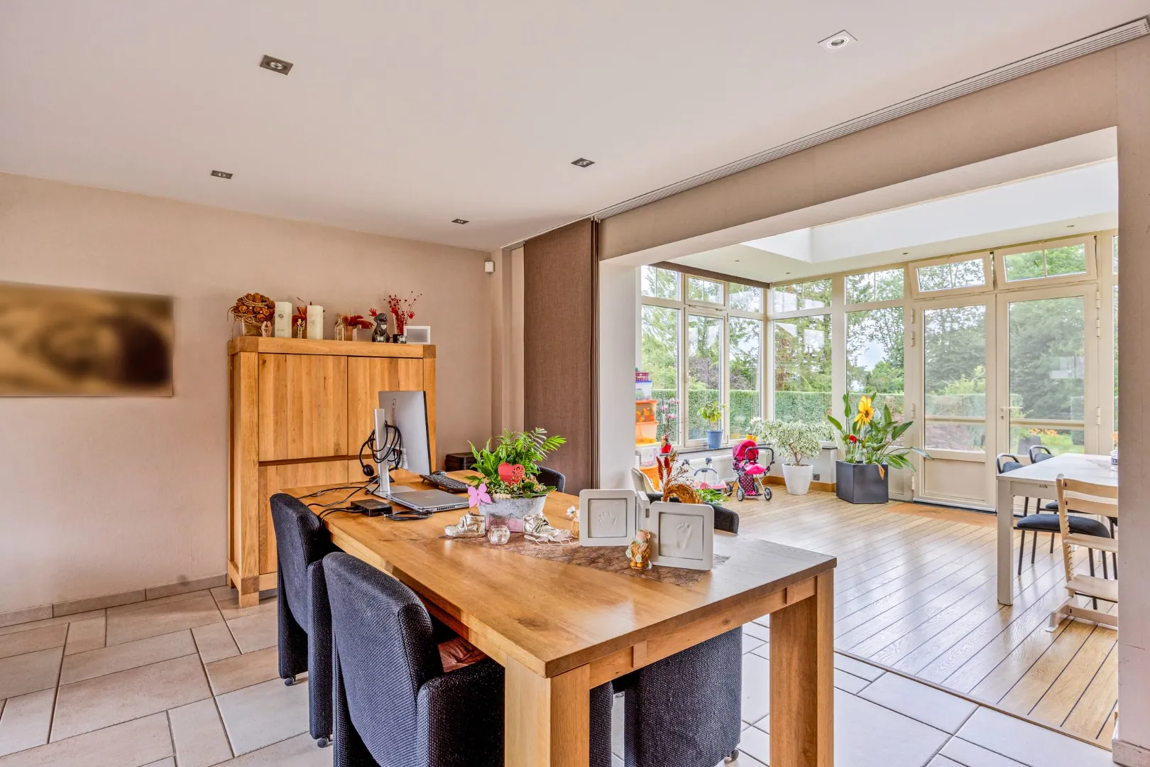 Grote prachtige villa gelegen te Haasrode (Oud-Heverlee) in een rustig straatje op 9are 19ca op wandelafstand van Meerdaalwoud. Het pand beschikt over 4 slaapkamers en heeft een bruikbare vloeroppervlakte van 284m² (incl kelderverdieping) en ligt vlakbij alle uitvalswegen van de E40 en E314 en slechts 10min van Leuven centrum. De villa is volledig onderkelderd en beschikt over een zeer ruime garage. Via de ruime inkomhal met toilet en vestiaire, komt u uit op de grote leefruimte met eetkamer. Verder ziet u de prachtige gesloten veranda met veel lichtinval voorzien van zonnewerend glas. Aansluitend vindt u de half open keuken met alle moderne toestellen. Op gelijkvloers is de eerste slaapkamer of bureau. Op verdieping 1 vindt u naast de 3 slaapkamers (waarvan 1 met dressing) nog een badkamer met bad, inloopdouche, toilet en dubbel lavabo. De tuin beschikt over een prachtig zicht met een grote tuinberging en terras waar u helemaal tot rust kunt komen.