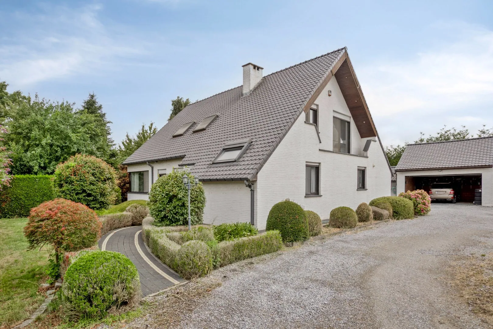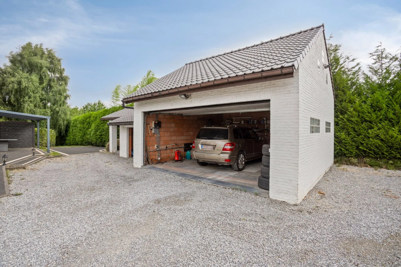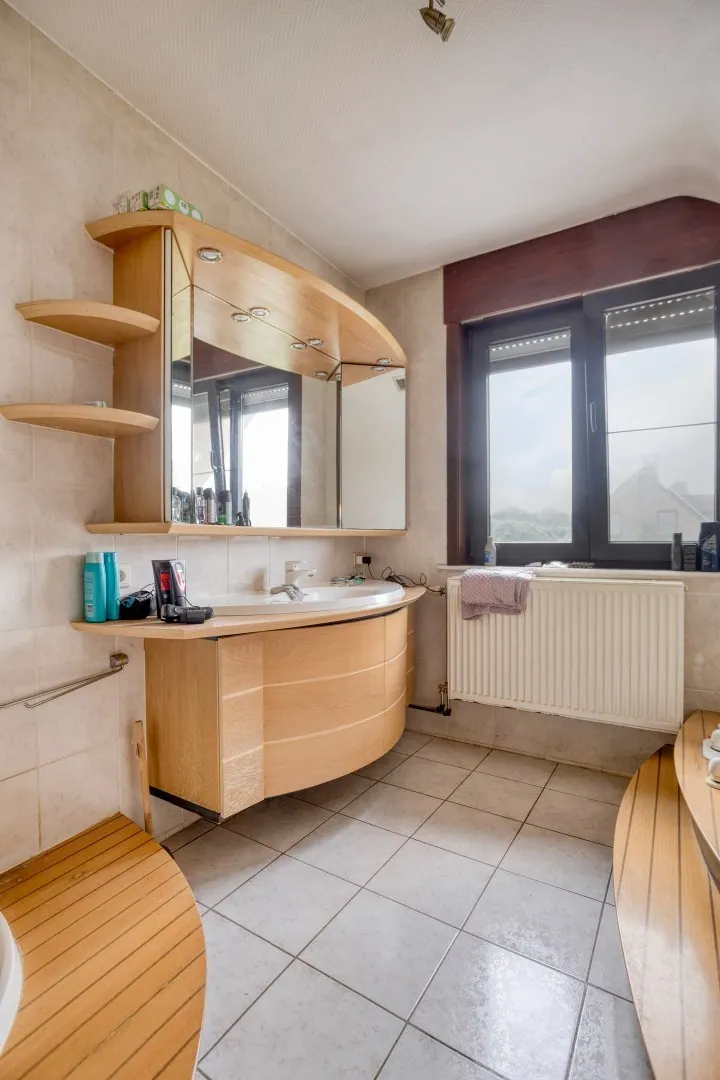 Buiten geniet je van een verzorgde tuin en een vrijstaand bijgebouw met dubbele garage, De ligging in een doodlopende straat garandeert rust, terwijl alles binnen handbereik blijft: het station van Tienen ligt op slechts 1,4 km, de E40 (afrit 25) bereik je in 5 minuten, en scholen, winkels, kinderopvang en openbaar vervoer bevinden zich vlakbij.