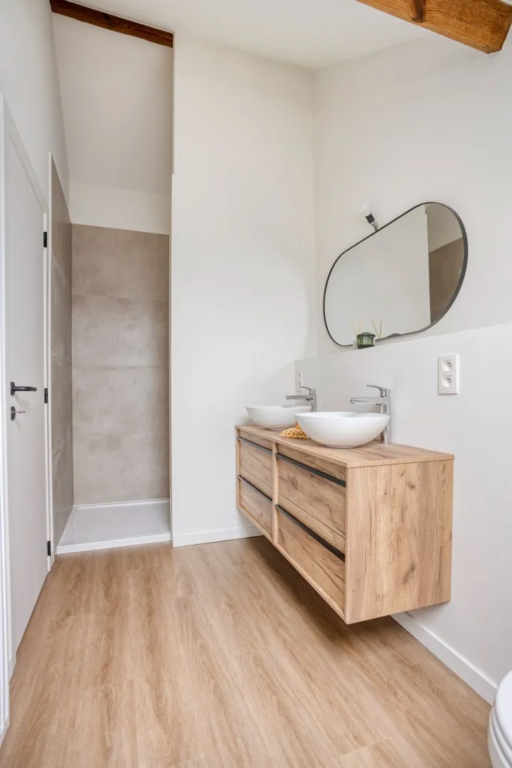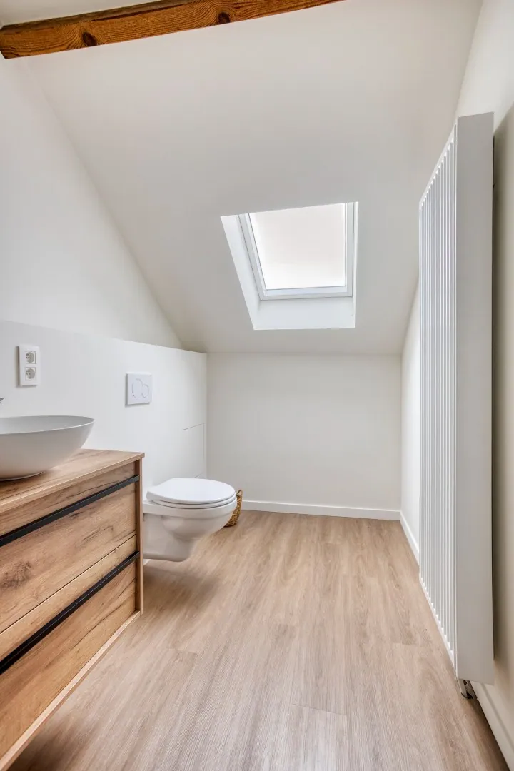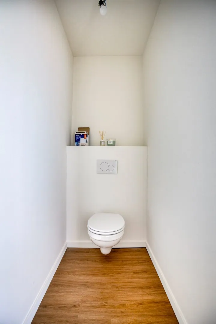 Alles werd vernieuwd: elektriciteit (conform), leidingen, sanitair, dakisolatie en vloerisolatie. Dankzij deze grondige vernieuwing en de energiezuinige voorzieningen behaalt de woning een gunstig EPC-label B, wat garant staat voor zorgeloos en efficiënt wonen.